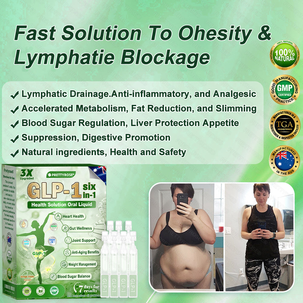 𝑷𝒓𝒆𝒕𝒕𝒚𝒓𝒐𝒔𝒆® 𝐺𝐿𝑃-1 6-𝑖𝑛-1 𝑴𝒆𝒕𝒂𝒃𝒐𝒍𝒊𝒄 𝑹𝒆𝒗𝒊𝒕𝒂𝒍𝒊𝒛𝒊𝒏𝒈 𝑶𝒓𝒂𝒍 𝑺𝒐𝒍𝒖𝒕𝒊𝒐𝒏 was developed by a team of over 30 experts in international endocrinology and diabetology after more than 3 years of research. It combines Meglutide with powerful herbal ingredients to boost metabolism, accelerate fat burning, and support digestive and lymphatic health. To further support the body during weight loss, the formula also includes Collagen Peptides, which stimulate the body’s collagen synthesis to enhance skin firmness, improve sagging and fine lines, and help reduce skin laxity caused by rapid weight loss. This oral solution has been approved by the Therapeutic Goods Administration (TGA) of Australia for its safety and efficacy, offering a scientifically validated Australian formulation designed to support both weight management and overall wellness.